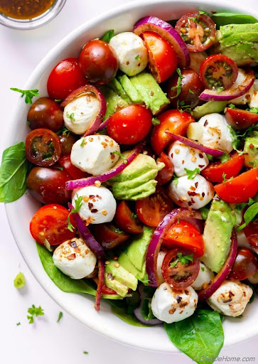 Avocado Tomato Mozzarella Salad Recipe | ChefDeHome.com from media.chefdehome.com · in a small bowl, whisk together the olive oil, balsamic vinegar, . The combination of ripe tomatoes, fresh mozzarella cheese and basil are a winning . Begin by sprinkling the tomatoes with sugar and half of the salt. Let them sit for a few minutes until the sugar dissolves, then . Caprese salad is an easy classic italian recipe. For a caprese salad, make sure you use the best quality ingredients you can afford. This salad is all about simple ingredients, enjoyed at their very peak. Arrange the tomatoes on a sheet pan, cut sides up,…